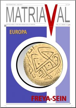 FREYA ist die Verkörperung der Wildnis, der Lust, der Vegetation. Sie ist die Essenz der Natur und weiß darum um alle Zusammenhänge, sagt Luisa Francia, die von KaraMa Herthas-Tochter Beran in ihrem Artikel über „Himmelskuh und Katzenwagen“ zitiert wird. Die allumfassende Göttin steht für ein weibliches Universum und sprengt die geistigen Fesseln eines zu kleinen und zu engen Denkens. Was diese Art der Befreyung für die europäische Frau und damit auch deren Söhne, Brüder und Onkel etc. bedeutet, darüber spricht Krista Köpp in „Die Selbstbefreyung der europäischen Frau“. „Im Namen der Freiheit ist schon viel Schindluder getrieben worden“, erinnert Gunnel Christine Hinrichsen in ihrem Aufsatz über „Rosa Luxemburg und ihr berühmtes Freiheitszitat: Freiheit ist immer die Freiheit der Andersdenkenden“. Im Matriculum befasst sich Uscha Madeisky mit dem Phänomen, dass weibliche Freyheit nicht hierarchisch und teilbar ist, sondern innerhalb der symbolischen Ordnung der Mutter Freyheit für alle Wesen bedeutet, während Doris Wolf als „Fratze des Patriarchats“ zeigt, dass die größte Katastrophe der Menschheits-geschichte die Art und Weise ist, in der die zivilisatorische Erziehung der Mütter durch die Gewalt der Väter ersetzt wurde. Wie diese Katastrophe aussieht, dazu liefert Claudia v. Werlhof eine ihrer glänzenden Analysen in „Das Patriarchat und ich – Der unerkannte Kern der Krise“. Kerstin Pilop würdigt die Entdeckung der Bosnischen Pyramiden und deren Bedeutung für das Erwachen der europäischen Völker, die jetzt Indigene in der nun völlig neu zu schreibenden Kulturgeschichte Alt-Europas sind. Auf welche Weise wir Töchter Freyas in matriarchalen Zeiten und auch heute mit Hilfe der Runen Geheimnisse und Enthüllungen erkennen konnten und können, dazu schreibt Annette Rath-Beckmann in „Die Runen raunen…“ Lasst uns Frauen von heute wieder zu so großen Seherinnen werden wie einst - befreyt zum Weitblick!